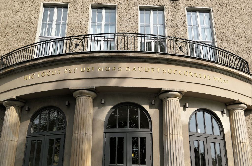Nad budynkiem Instytutu Anatomii widnieje napis: HIC LOCUS EST UBI MORS GAUDET SUCCURRERE VITAE. Oto miejsce, gdzie śmierć cieszy się, że może przyjść z pomocą życiu.