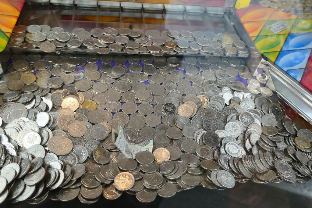 Po burzy przyszło słońce i wszyscy znowu ruszyli na szlak. Zatrzymaliśmy się przy grze w pieniądze. Niestety kilka prób przebiegło bez sukcesu, chyba, że sukcesem nazwać można było pozbycie się bilonu. Potem były sztuczne ścianki wspinaczkowe, gofry wegańskie, chińskie (nie jestem pewna) ciupagi, kino 5 D, a może nawet 7 D max, świat wirtualny z ofertą przeróżnych gier, manekiny ubrane, przebrane w ludowe stroje, znowu burza, znowu lody, kubki z napisem Pozdrowienia z Tatr, meksykańskie kierpce i góralskie kapelusze.