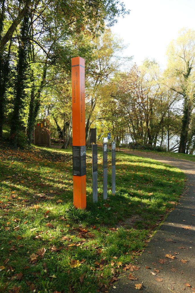 Griebnitzsee, jezioro na granicy Berlina i Poczdamu. Statek wycieczkowy przepełniony, jakby miałby to być ostatni ciepły dzień tej jesieni, kajaki, deski i inne łódki na jeziorze. Podczas podziału Berlina granica między NRD a Berlinem Zachodnim, a więc praktycznie część muru berlińskiego, leżała na środku jeziora. Stela z nazwiskami upamiętnia trzy osoby, Willego Marzahna, Petera Böhme i Jörgena Schmidtchen (pierwszy strażnik graniczny, który zginął przy ochronie muru). Warto wspomnieć o czwartej ofierze, o Günterze Wiedenhöft, który utonął w grudniu 1962 roku w jeziorze podczas próby ucieczki.