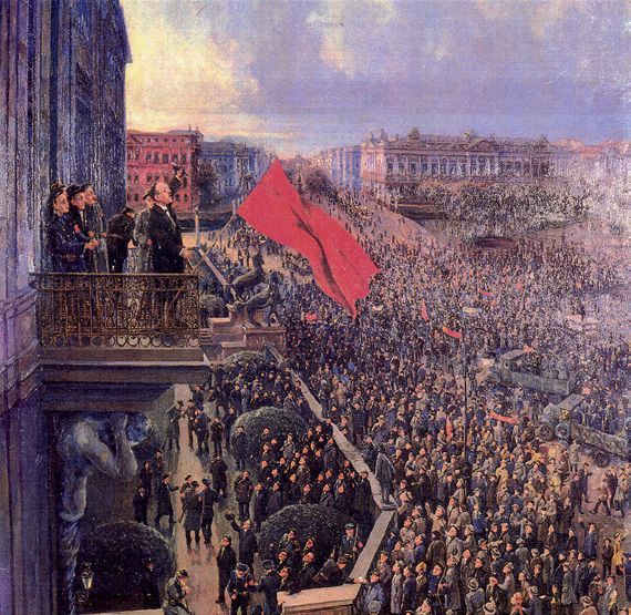 Am gleichen Tag rief am anderen Ende der Lindenstraße Karl Liebknecht die Räterepublik am Stadtschloss aus. 1954 hat ein DDR Maler das eindrucksvoller dargestellt als es war.