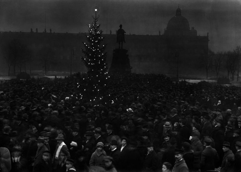 Es war das erste Weihnachten nach dem verlorenen Krieg und eine große Menschenmenge war versammelt um einen einzigen Weihnachtsbaum. So habe ich das eindrucksvolle Bild vom Weihnachtsbaum 1918 betitelt.