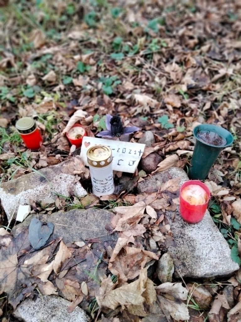 Przy kamieniu ktoś jednak był. Szukam więc w internecie i znajduję informację: 13 listopada 2022 roku, w tak zwany Volkstrauertag, Dzień Żałoby Narodowej, kiedy to tradycyjnie przy kamieniu pamięci spotykają się przedstawiciele parafii, które kiedyś założyły obóz. Co roku przynoszą ze sobą swój kamień i układają na powierzchni pomnika. A potem zostawiają kwiat lub świeczkę, a ich parafialny kamień na rok wraca z powrotem do jakiejś szafy w zakrystii. W zamyśle artysty, Rainera Festa, kiedyś zdarzy się tak, że na powierzchni kamienia pamiątkowego na moment zostaną ułożone wszystkie cegły z nazwami wszystkich parafii, biorących podczas wojny udział w tym haniebnym procederze. Ale nigdy się jeszcze nie zdarzyło, żeby tego dnia w uroczystości wzięli udział wszyscy spadkobiercy owej winy. Wielu nie pamięta o tej symbolicznej uroczystości, wielu nie ma czasu, niektórzy świadomie odrzucają przymus pamięci.