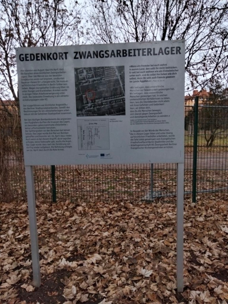 Można by powiedzieć, ach, nic poważnego, zwykły obóz pracy. W samym Berlinie były ich setki. Jednak ten obóz był inny, bo został zorganizowany przez berlińskie kościoły ewangelickie (39 parafii) i katolickie (3 parafie, ale w tym główny kościół katolicki Berlina, czyli katedra świętej Jadwigi). Jest to jedyny taki przypadek w historii II wojny światowej. Kościoły, owszem, korzystały w całych Niemczech z pracy robotników przymusowych, podobnie jak korzystały z niej wszystkie instytucje – władze miast i gmin, banki, szkoły, fabryki, ale jednak tylko w Berlinie Kościół wziął sprawę w swoje ręce i sam zorganizował obóz pracy. Spróbujmy to sobie wyobrazić.