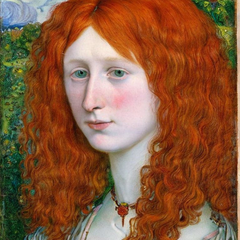 (Obraz mający przypominać malarstwo prerafaelitów, wygenerowany przez sztuczną inteligencję Stable Diffusion)