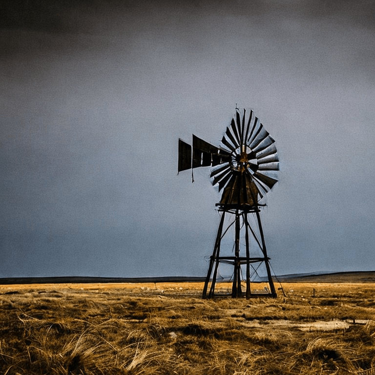 The first scene of the film opens with a shot of a desolate windmill standing alone in the middle of a barren, windswept plain. The sky is dark and foreboding, and the wind howls as it blows across the land.