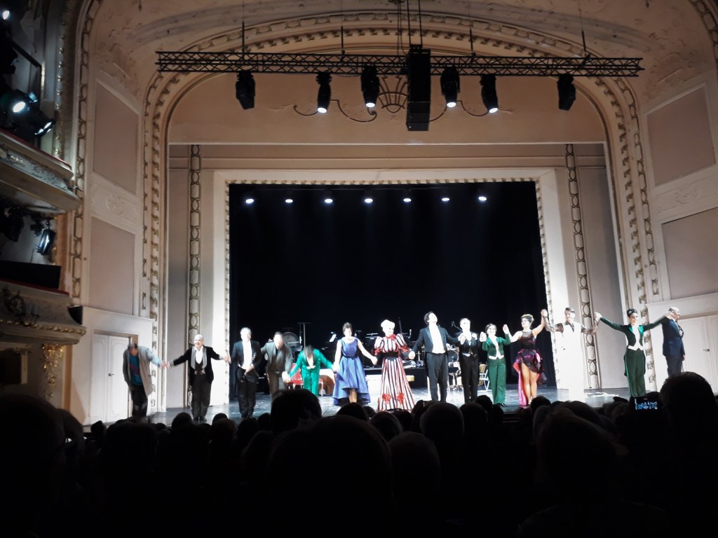 Nicht genug zu loben ist auch das Orchester, auch es in einer Taschenausgabe. In diesem Fall sind alle Guten fünf: neben Kai Tietje Falk Breitkreuz und das Trio Zucchini Sistaz – drei tolle Musikerinnen in grünen Fracks. Diese Combo leistet Außergewöhnliches. Sie spielen darunter Banjo, Singende Säge und Ukulele. Der neue «Fledermaus»-Sound ist ein Mix aus Jazz, Blues, Rhythmen der Karibik, der 1920er Jahre und der Klezmer. Und höre da: Der Walzer im neuen Tongewand gelingt und klingt soooo frappant.