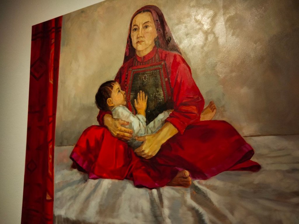 Was ich von der Ausstellungs denke? Es ist ANDERS. Das scheint mir das Wichtigste dabei. Es ist anders, es gibt viele sanfte Menschen, Frauen, Kinder, Musik. Es gibt Haus und Heimat, Essen, Kochen, Sticken, Nähen, Schlafen, Lieben. Textilien und nicht nur Texte. Und es ist so ungewöhnlich, plötzlich all diese Menschen zu sehen, von denen wir bis jetzt nichts wußten – Buryaten, Tschuktschen, Tschetschenen, Bashkiren, Kasachen, Tataren – alle diese Völker, die Mal von Russland eingenommen wurden und bis jetzt große, schweigende, vergessene Teile des russischen Imperiums sind. Wir sehen die größen Volker, größe Nationen – die Ukrainer, die Weißrussen und natürlich die Russen selbst. Die kleinen sind so weit weg, so marginalisiert und plötzlich sind sie alle da. So viele, so sanft und doch so hart.
