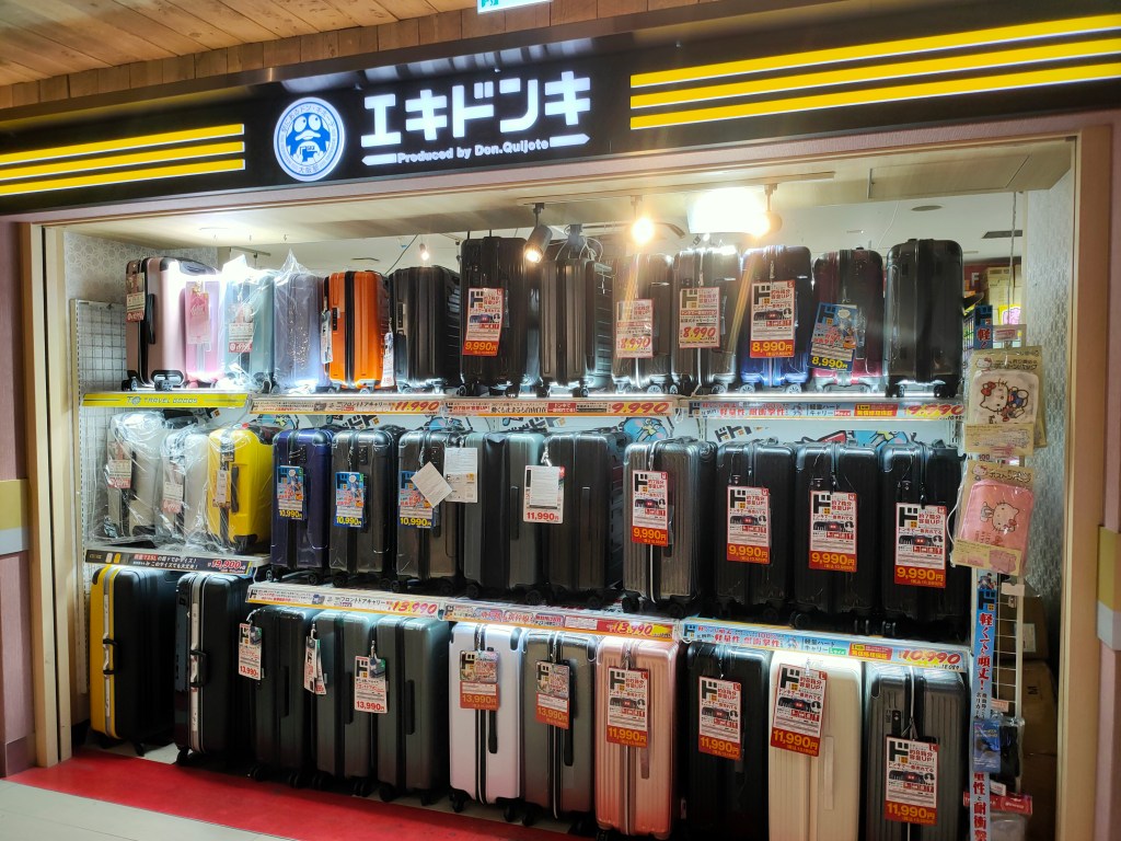 Na dworcu w Osace. Walizki produkowane przez Don Kichota.