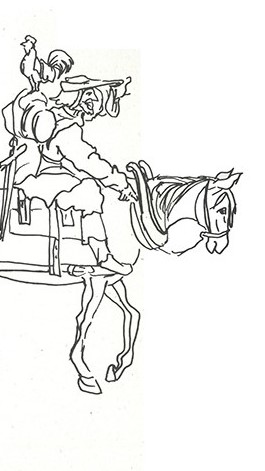 To co zobaczyłam, to tylko połowa ilustracji, mężczyzna na koniu i w kapeluszu. Oczywiście nie był to Don Kichot, ale wtedy tego nie wiedziałam, ten zestaw elementów – mężczyzna, kapelusz, koń – to dla mnie już zawsze i na zawsze Don Kichot. Tak naprawdę mężczyzna prowadzi ze sobą liczną rodzinę.