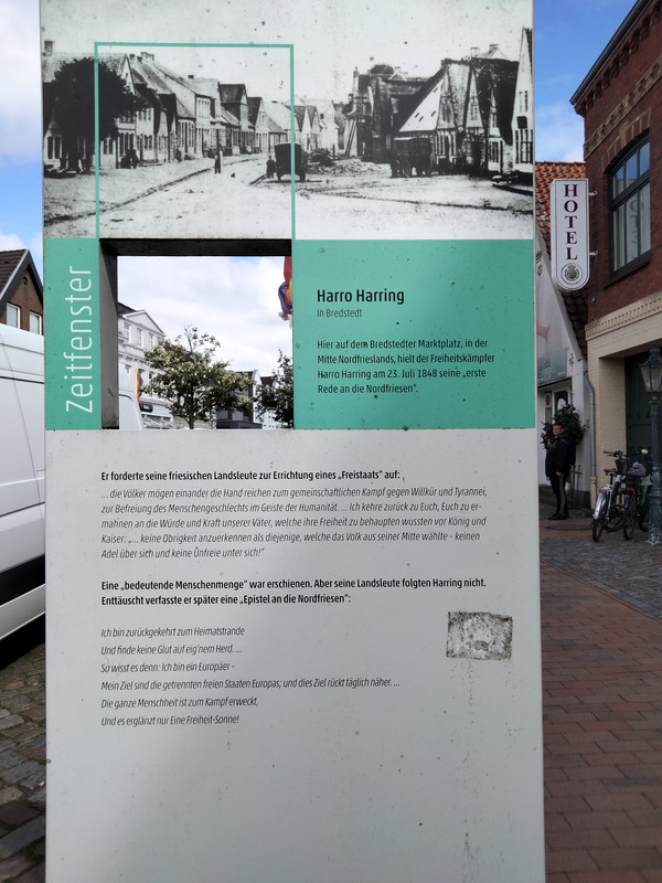 Tablica na rynku Bredstedt przypomina o Harro Harringu. Przyglądają się jej chyba tylko turyści, tutejsi mieszkańcy wcale jej nie zauważają. Pytałam.