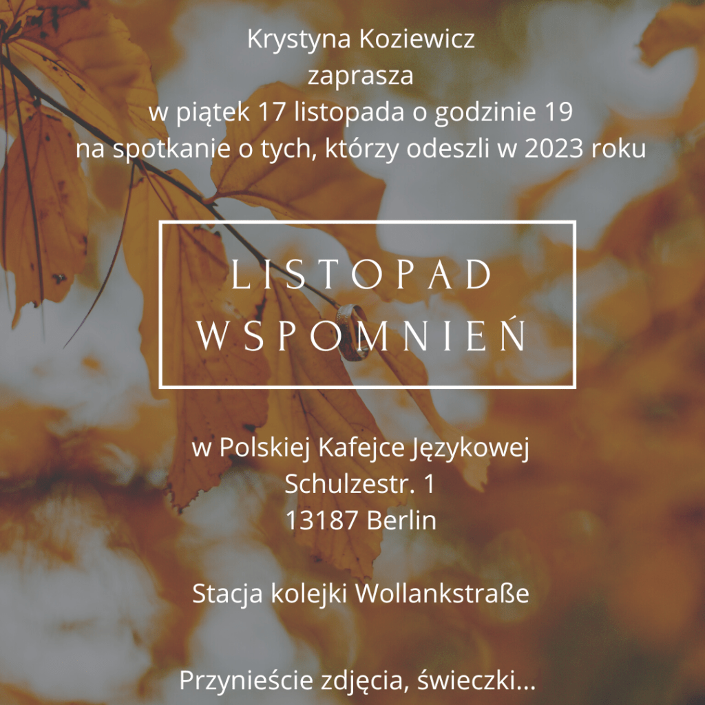 Człowiek żyje tak długo, jak długo żyje pamięć o NIM! Chcemy wspólnie odświeżyć pamięć o tych, którzy odeszli podczas spotkania w Sprachcafé Polnisch, na które serdecznie zapraszamy wszystkich bliskich.