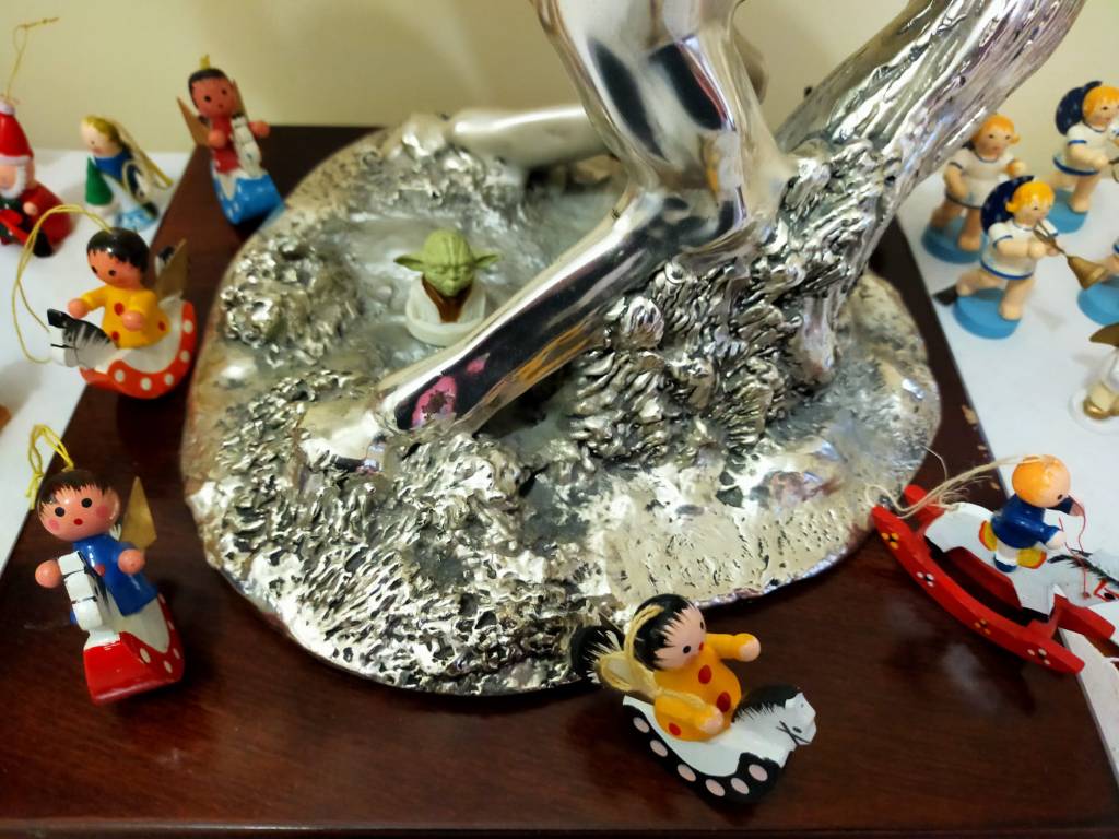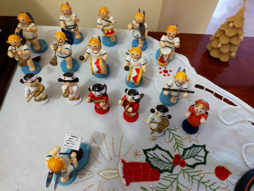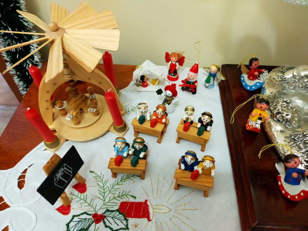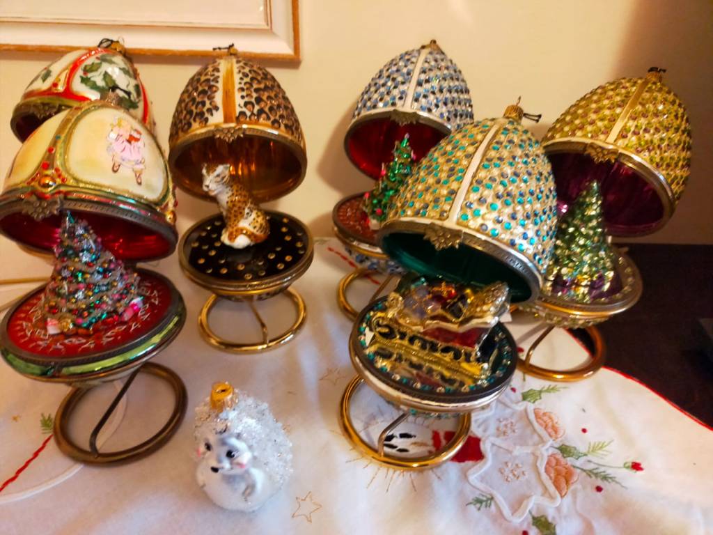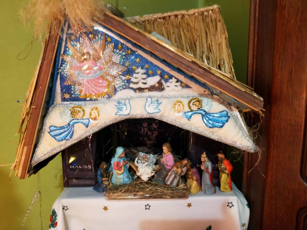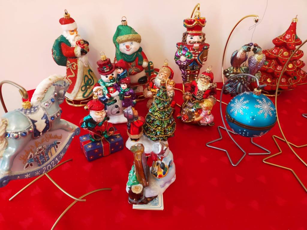 Pani domu to pasjonatka bombek. Ma ich około 1,5 tysiąca… Taniec wokół choinki rozpoczyna się więc ze dwa tygodnie przed Wigilią. Nie tylko na niej, lecz i na wszystkich regałach, komodach i szafach właścicielka pieczołowicie układa historyjki ze szklanych figurek. Są tu i chóry anielskie i armia dziadków do orzechów, bogactwo barwnej fauny i flory, dzwonki, szyszki, grzybki i rozgwiazdy. Z dekorowanych drewnianych skrzynek uśmiechają się bohaterowie bajek – Pinokio, Calineczka, Królewna Śnieżka, kominiarze, strażacy i koty wietroloty… Oprócz tego prawdziwe precjoza – bombki-jaja Fabergera – do wyboru i koloru, bomki-pozytywki, bombki-klosze ze szkła kryjące cudenka, drewniane figurki, rzeźbione latarnie rodem z Łużyc… Jest podświetlona szopka wykonana przez mamę – Góralkę.