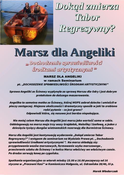 Marsz dla Angeliki jest kontynuacją wydarzenia „Dokąd zmierza Tabor Regresywny?” i wstępem do seminarium na Wydziale Prawa pt. „Dochodzenie sprawiedliwości środkami artystycznymi”.