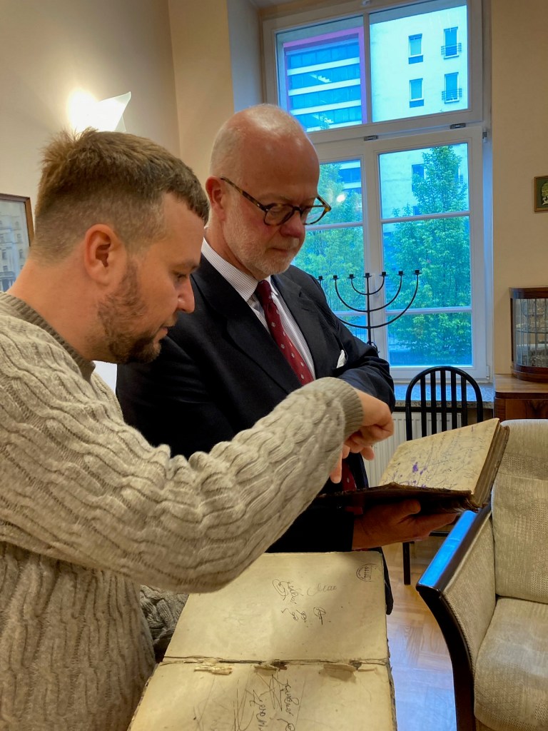 In June of 2023 I had the great pleasure of meeting a philanthropist, former diplomat and a member of the British royal family, George Windsor, Earl of St Andrews. During his visit to Lublin, the earl had only one request—to meet with me and hear about our Lublin Yeshiva Library project! To my great surprise it turned out that the earl easily reads the Hebrew alphabet and is a keen reader of Polish literature (in original Polish!).