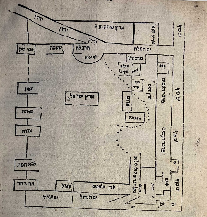 The map of the Land of Israel as depicted in Eliyah ha-Mizrahi from 1545.