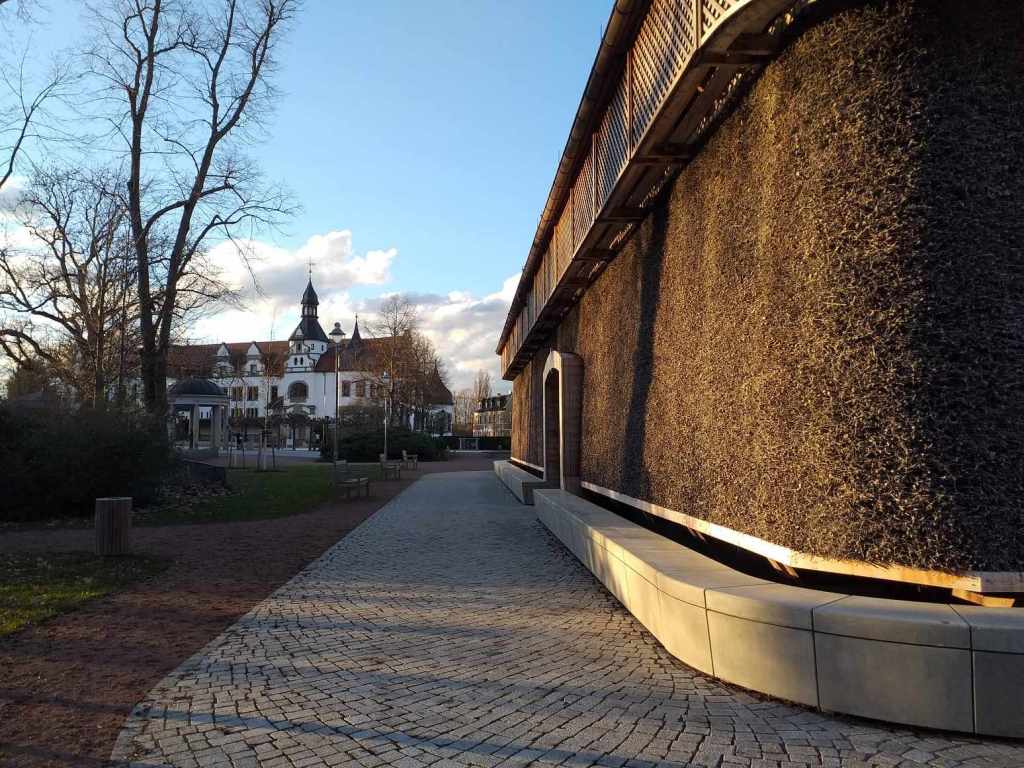 Z okna widzę Łabędzi Staw z fontanną, a za nim tajemniczy dom zdrojowy (Kurhaus). Tajemniczy, bo dla mnie na razie nieosiągalny. I niech tak zostanie. Niech będzie tajemnicą. Wolałabym się nie rozczarować, wchodząc do środka. Codziennie spoglądam w jego kierunku przez panoramiczne okno mojego zdrojowego pokoju.