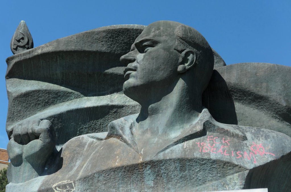 Pomnik stoi, przytłacza wielkością, zdumiewa przekazem, przypomina Lenina, jest dobrym miejscem dla graficiarzy, a 9 maja oblegali go chłopaki z głośnikiem, piwem i muzyką.