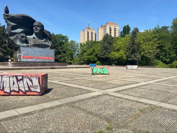 Pomnik Thälmanna w parku Thälmanna był chyba ostatnim z pomników mu poświęconych. Może dlatego musiał być tak wielki, a może czekał na odpowiednie miejsce. A miejsce zwolniło się dość późno.