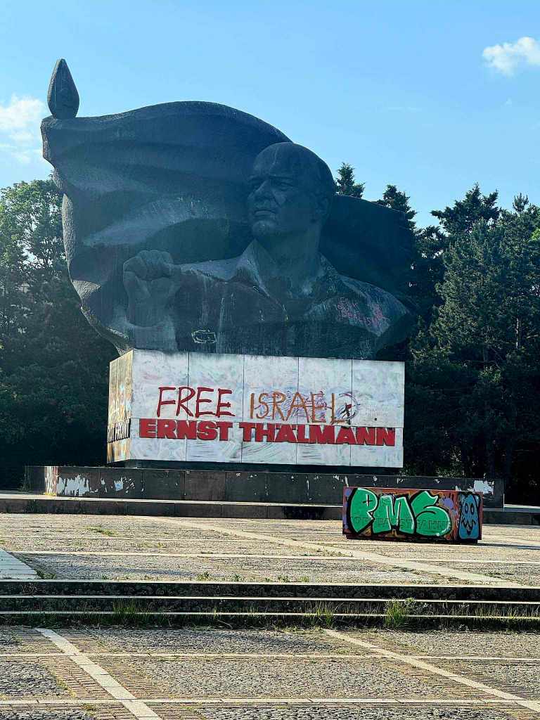Kilka dni po dniu zwycięstwa na pomniku pojawił się nowy napis: Free Gaza, a krótko później Free Israel. Thälmannowi już wszystko jedno. Z uniesioną prawą pięścią pozdrawia graficiarzy, rolkarzy, spacerujących i niezainteresowanych, starych i młodych, tych ze Wschodu i tych z Zachodu, tych z Południa i tych z Północy.