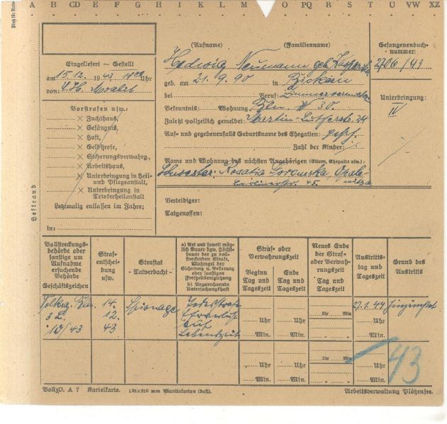 In der Kartei der Gedenkstätte Deutscher Widerstand befindet sich folgender Text: