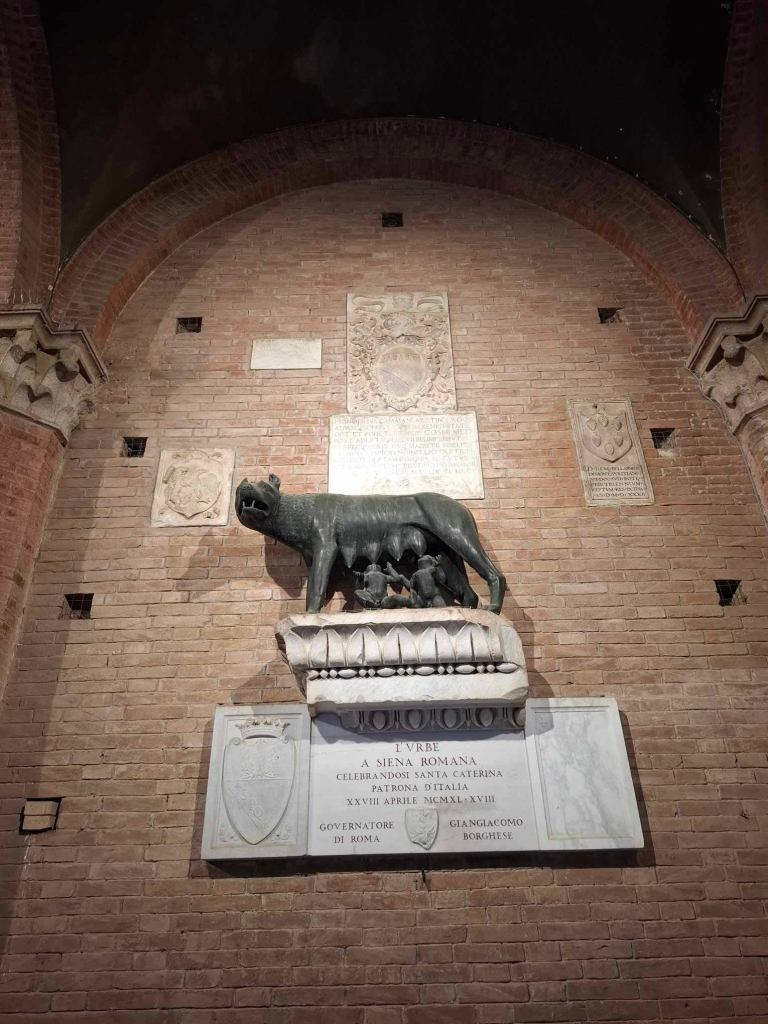 Ten dziedziniec ratuszowo-pałacowy jest zresztą wart wizyty sam dla siebie. Wilczyca kapitolińska w Sienie zamiast Rzymu? A czemuż by nie? Etruska rzeźba w etruskim mieście jest wszak jak najbardziej na swoim miejscu!