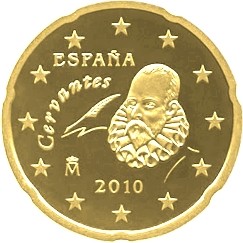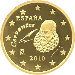 2010 gab Spanien weitere Münzen, die an Cervantes erinnern aus: 10, 20 und 50 Eurocent. Auf den Bildern sehen sie alle gleich aus, aber natürlich der Unterschied liegt in der Größe.