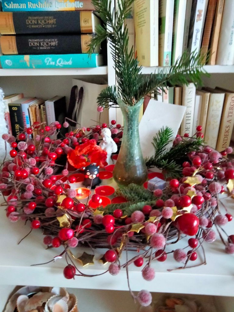 Nasza nowa autorka, Bożena Jakubowska, nadesłała kolejne staropolskie informacje przedświąteczne, a Joasia Rubinroth & Tanja Krüger, podarowały mi kalendarz adwentowy, a w nim codzienne niespodzianki, no i wreszcie ja sama też sobie ułożyłam jak co roku wieniec adwentowy, bo lubię wszystkie święta (tak, Halloween i walentynki też lubię!), więc mamy na dziś nieoczywiście oczywisty misz-masz przedświąteczny.