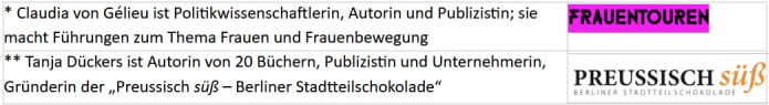 Mit dabei zwei bekannte Berliner Schriftstellerinnen – Claudia von Gélieu* und Tanja Dückers**