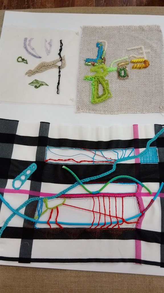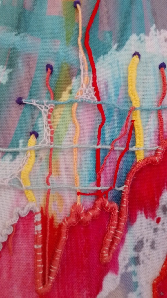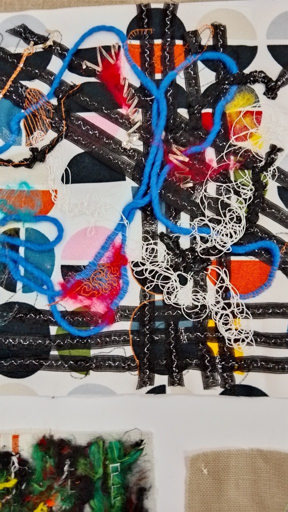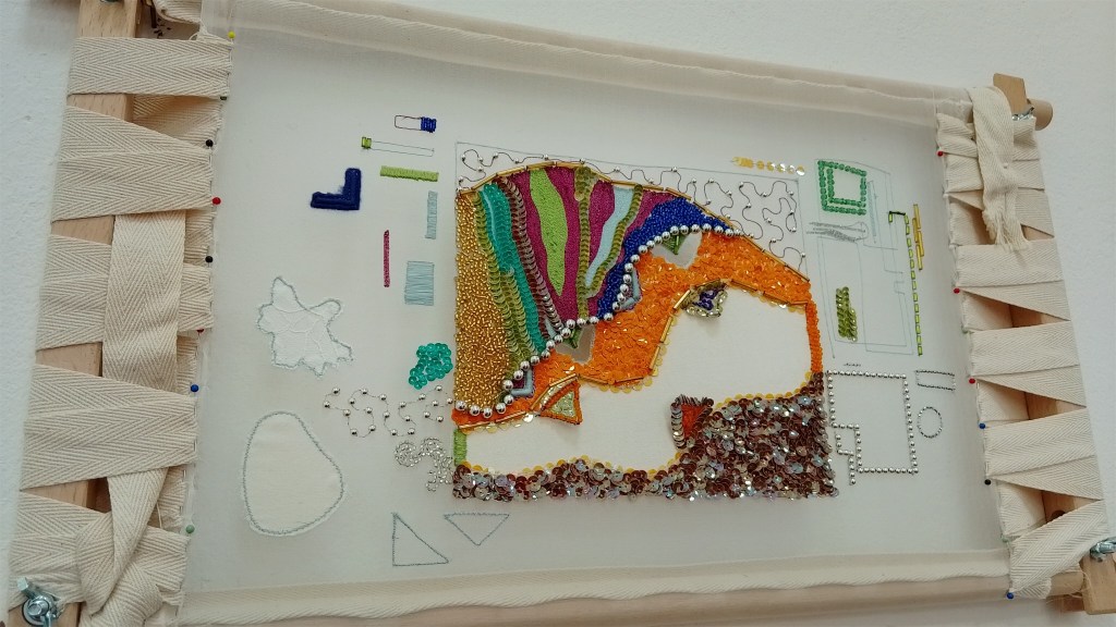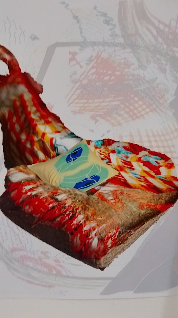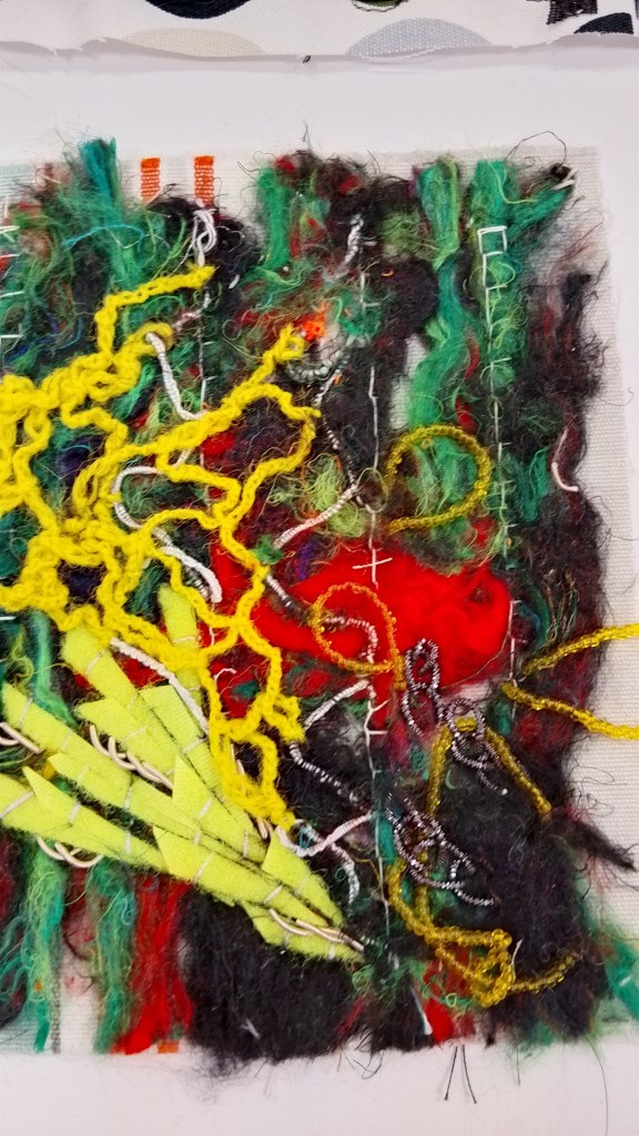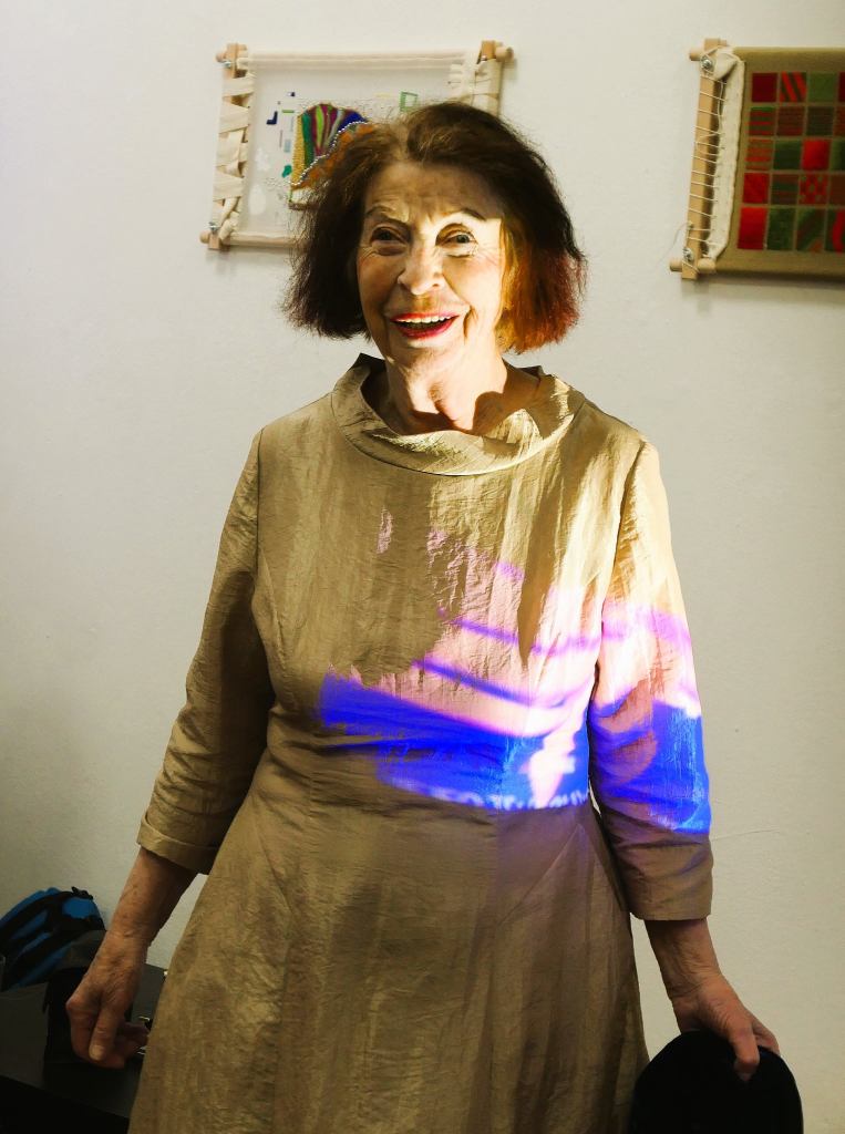 Ela: Marceli umie rozmawiać z nitką, z tkaniną, ma swoje wizję wzorów, kolorów. Tkaninie utkanej – było nie było – z nitki dodaje nową nitkę, którą prowadzi jak chce, lub odwrotnie – czasem nitka wymyka się spod kontroli.