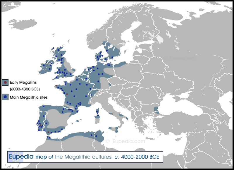 Pan ich rozproszył i poszli w różnych kierunkach, ale zabrali ze sobą ideę budowania wielkiej świątyni, świątyni wielkiej jak góra. Budowle megalityczne, wielkie kamienie, to najstarsze zachowane struktury architektoniczne na świecie. Większość z nich powstała na terenie Europy, poczynając od wschodnich krańców Morza Śródziemnego. Wzniesiono je pomiędzy 4000 a 2000 r. p.n.e., czyli na przełomie neolitu i brązu. Są też młodsze, z epoki żelaza i najstarsze, które powstały tysiące lat wcześniej. Wzorem dla nich wszystkich była wieża Babel, czyli piramidy sumeryjskie, zwane zikkuratami oraz zbudowane na ich wzór piramidy egipskie. Im dalej ci, którzy wędrowali, oddalali się czasowo i terytorialnie od piramid-matek, tym bardziej zmieniała się koncepcja i plan budowy struktur z wielkich kamieni. Budowniczowie Wielkich Kamieni posuwali się wzdłuż wybrzeży. Zapewne niekiedy płynęli na statkach, kiedy indziej wędrowali lądem. Ich wędrówka trwała kilka tysięcy lat. Najpierw posuwali się wzdłuż północnych i południowych wybrzeży Morza Śródziemnego, otoczyli Hiszpanię i stamtąd powędrowali na północ. Szli wybrzeżami Francji i wzduż zachodniej Anglii.