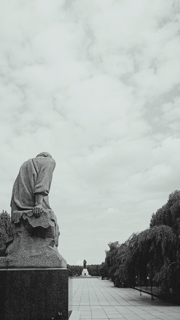 iii. To jest jak wyzwanie rzucone aktowi zapominania, aktowi przekształcania, umniejszania, trywializacji, normalizacji. Ten ostatni przymiotnik mi się najbardziej podoba. Bo choć jest to właściwie w parku wypoczynkowym, z ludźmi na piknikowych kocach, to całą swoją właściwością Sowjetisches Ehrenmal im Treptower Park wydaje się poświadczać zdarzeniu nie tyle nienormalnemu, co anormalnemu, wbrew-normalnemu.