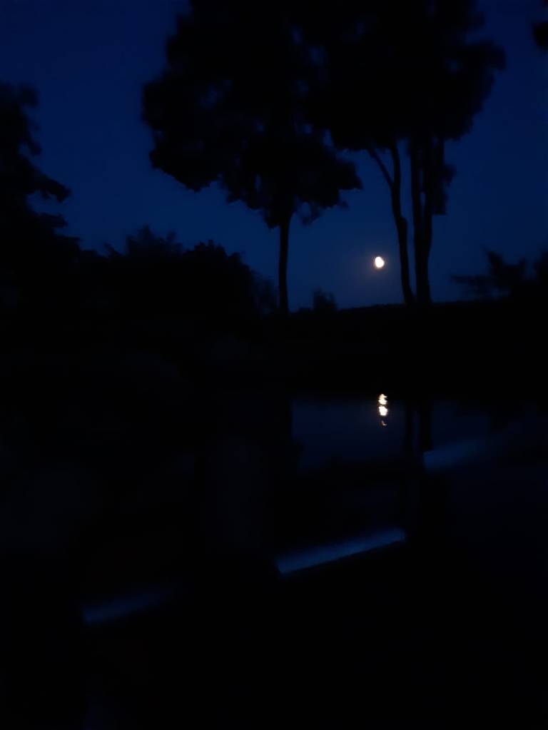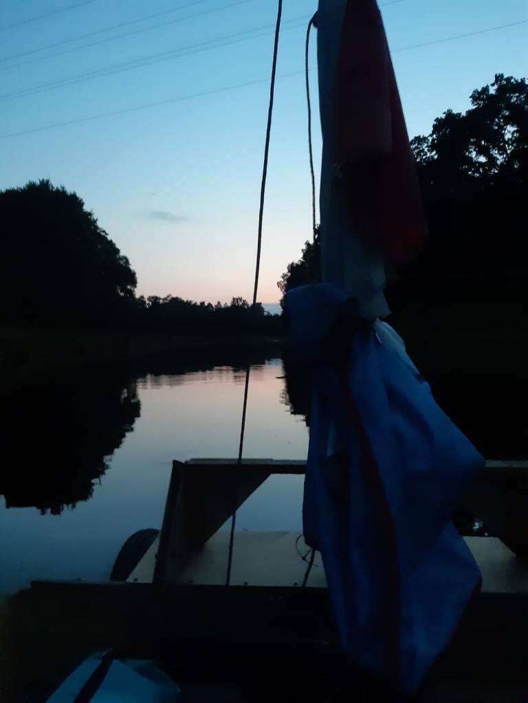 W końcu zrezygnowałem z jezior i Aldergestell przez Schmockwitz doszedłem do Wernsdorf. Teraz płynę wiosłując, zapada zmrok, robię zdjęcie i wysyłam Anicie.