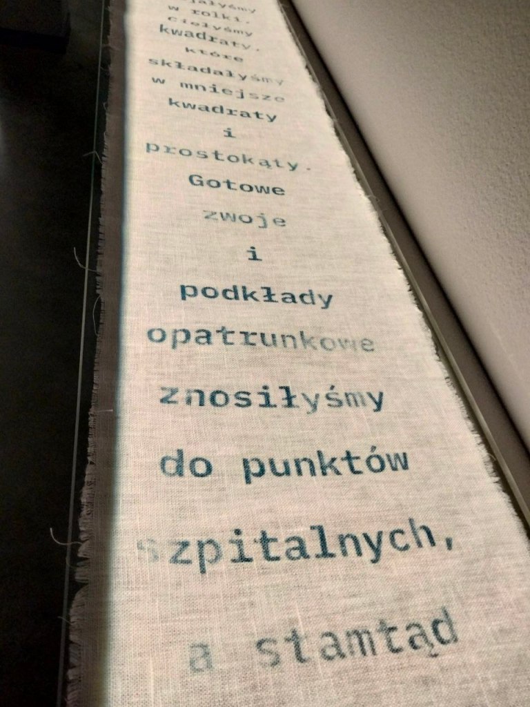 Ale myślę przede wszystkim o tym, że to właśnie delikatne rośliny, len, pokrzywa, piękniej upamiętniają wojnę niż góry kamieni, betonu i sztucznie rdzawionego żelastwa. Kuratorka tak o tym napisała: W kontekście miejsc pamięci po II wojnie światowej oznacza to konieczność uznania roli przyrody nie tylko jako neutralnego tła wydarzeń, lecz jako ich aktywnego uczestnika – świadka, który wspótworzy historię, przechowuje ją i przekazuje dalej.