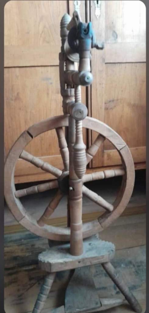 Tata nie mógł sobie przypomnieć jak te mędlarki wyglądały, albo mógł, ale nie umiał ich opisać. Znalazłam w internecie, może były podobne. Potem szczotką babcia wyczesywała lnu długie włosy. Zimą zasiadała przy kołowrotku i przędła.