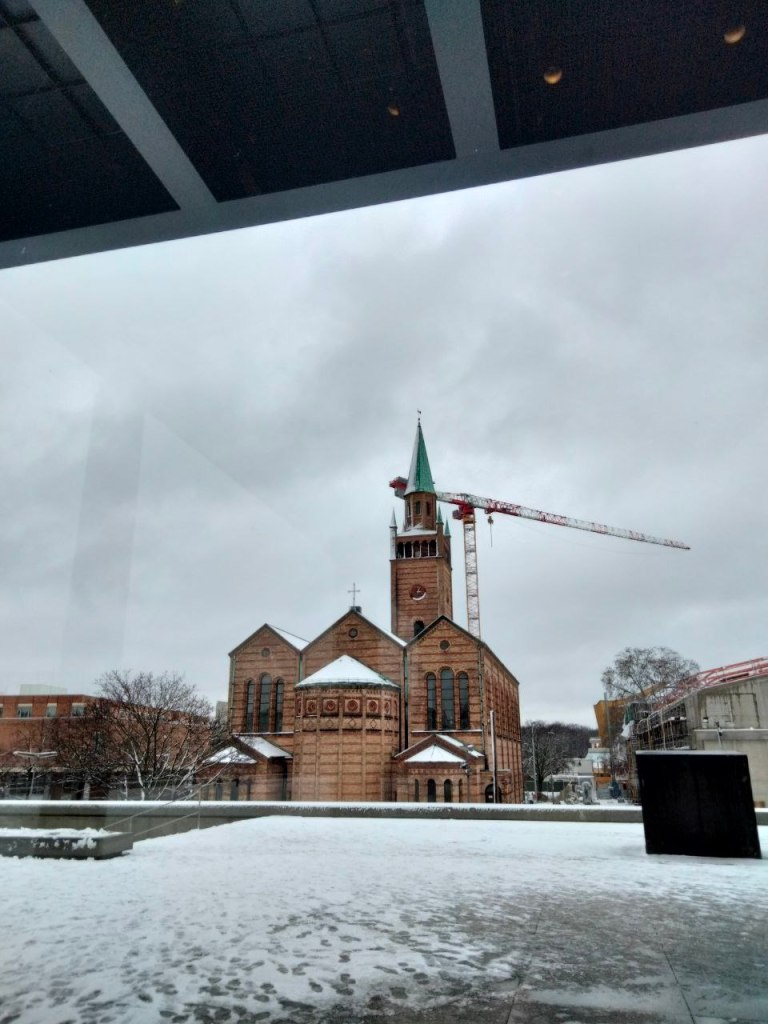 The Clock to 24-godzinny film, zmontowany z tysięcy fragmentów filmów, w których pojawia się zegar lub zegarek i widać, że czas upływa. Jako widz oglądasz czas autentyczny, bo instalacja jest zsynchronizowana z czasem lokalnym. Myśmy byli od 13 do 16. Można by było zostać dłużej, bilet jest na cały dzień, ale oczywiście w pewnym momencie zaczynają cię boleć oczy, głowa albo kark. Niestety możemy obejrzeć tylko te fragmenty filmu, które pokrywają się z czasem, kiedy Galeria jest otwarta! Wieczór, noc i poranek pokazano tylko podczas dwóch pokazów 24-godzinnych. Jeden był 2 stycznia i kolejka była co najmniej czterogodzinna!