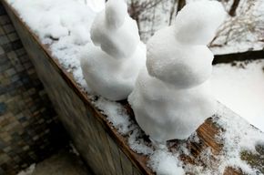 Być może tej samej zimy powstały dwa bałwany na balkonie. Antoś i ja, ja to ta większa. Stoimy bardzo ryzykownie i kiedyś w końcu jako bałwany (jak te bałwany) spadliśmy na dół. Dwa następne bałwany powstały na balkonie kilka dni temu. Tym razem ja to ta mniejsza, większy to Konrad. Niektórzy twierdzą, że to naprawdę my, “jak żywi”.