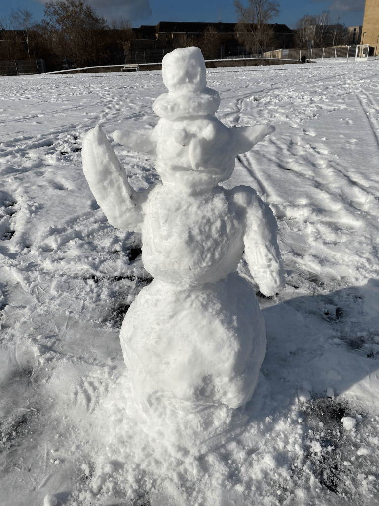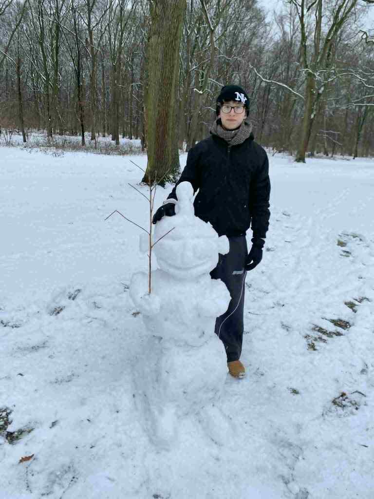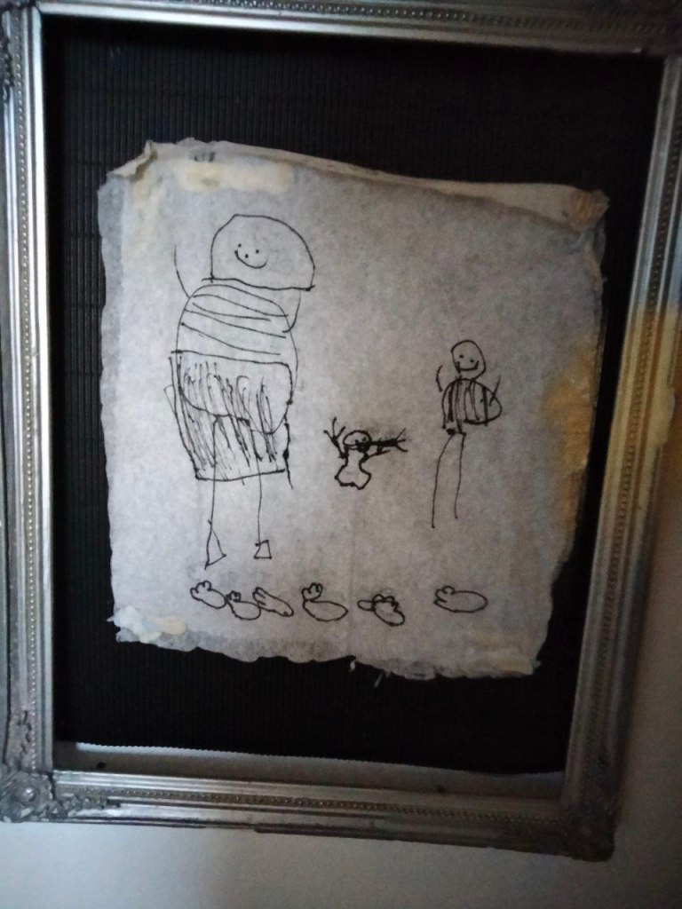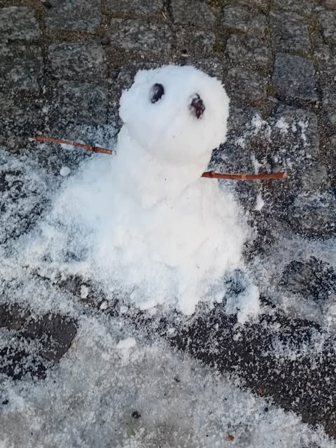 To nasze najdawniejsze zanotowane artystycznie zdjęcie bałwana. Na zdjęciu obrazek namalowany przez wnuka, wówczas pewnie trzyletniego, nie wiem dokładnie, ale w Berlinie śnieżne zimy są co dziesięć, piętnaście lat, więc tak przypuszczam, że to np. zima 2013 roku.