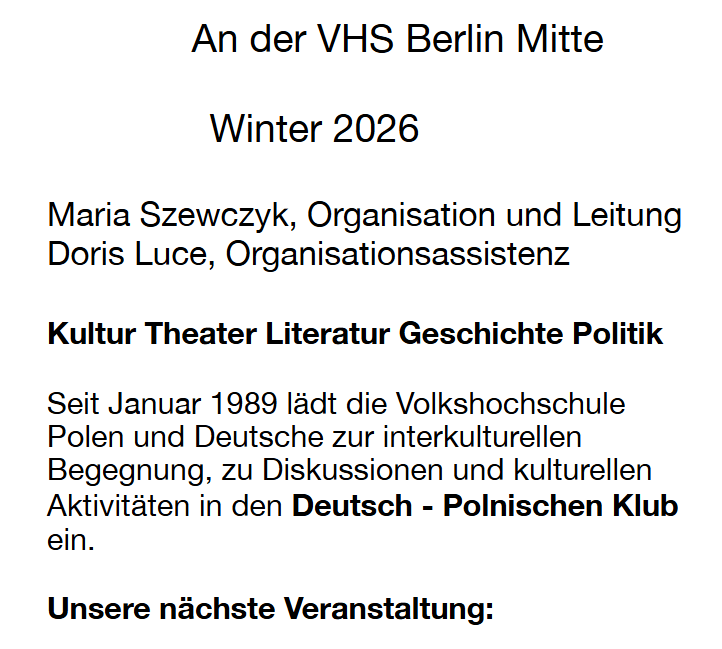 Ich werde wieder aus meinem Buch lesen by Ewa Maria Blog18/01/202602/01/2026 Share this: Share on X (Opens in new window) X Share on Facebook (Opens in new window) Facebook Like Loading... Related
