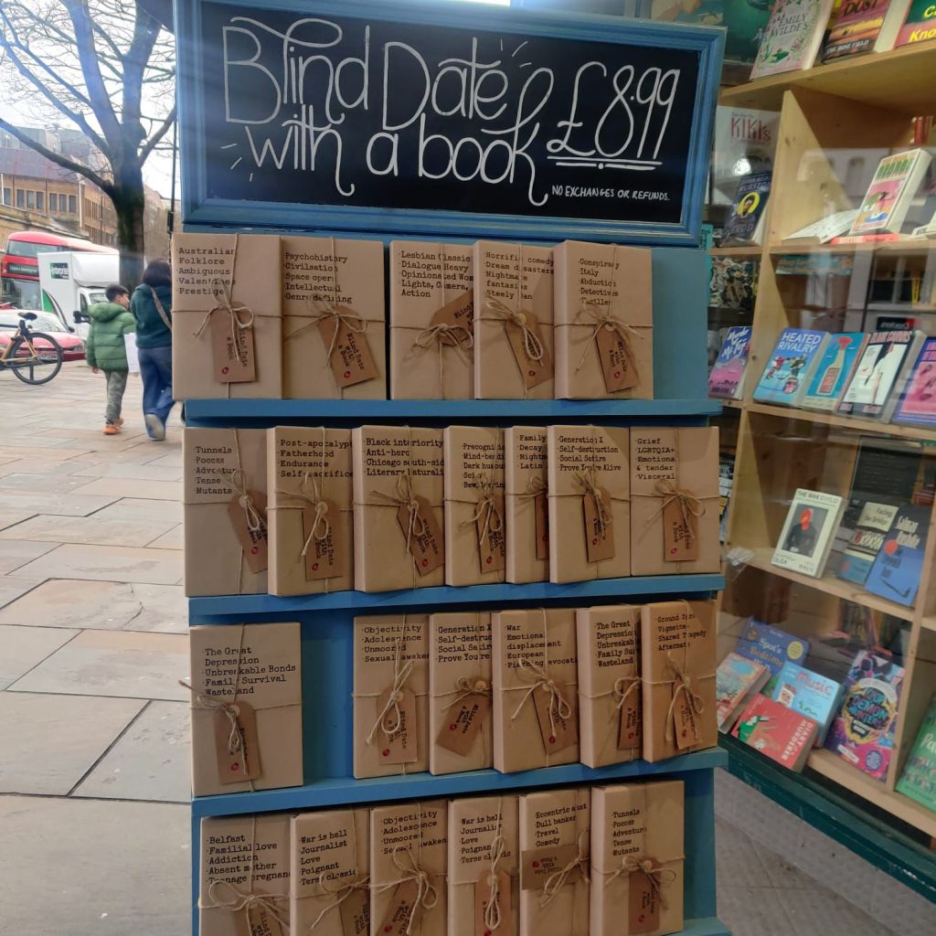 – Blind date with a book- you won’t know the title til you unwrap the package (upper street bookstore).