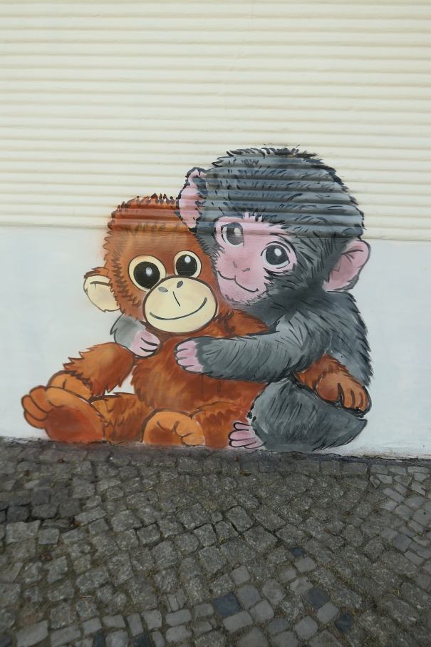 W Poznaniu, pod osłoną nocy artysta streetartowy Kawu popełnił przestępstwo i namalował małpki (wypisz wymaluj podobne bardzo do oryginałów) na zabytkowym murze wejścia do Starego Zoo w Poznaniu. Na całe nieszczęście, ktoś go przyuważył i zgłosił sprawę na policję. Służby przyjechały, ale w sumie było już po sprawie, bo małpki na murze są. Być może, zamiarem artysty było jeszcze jakieś egzotyczne tło, ale nie zdążył. Malunek jest nieduży, w sam raz dla dzieciaków, którym rodzice pstrykają przy małpkach fotki.