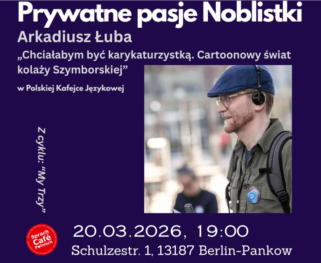 Wir laden Sie zu einem Treffen mit Arkadiusz Łuba ein. Wir sprechen über sein Buch „Chciałabym być karykaturzystką. Cartoonowy świat kolaży Szymborskiej” (Ich möchte Karikaturistin sein. Die Cartoonhafte Welt der Collagen von Szymborska). Es ist im Warschauer Verlag timof comics erschienen und entdeckt das Werk von Wisława Szymborska durch die Brille ihrer Leidenschaft für Collagen.
