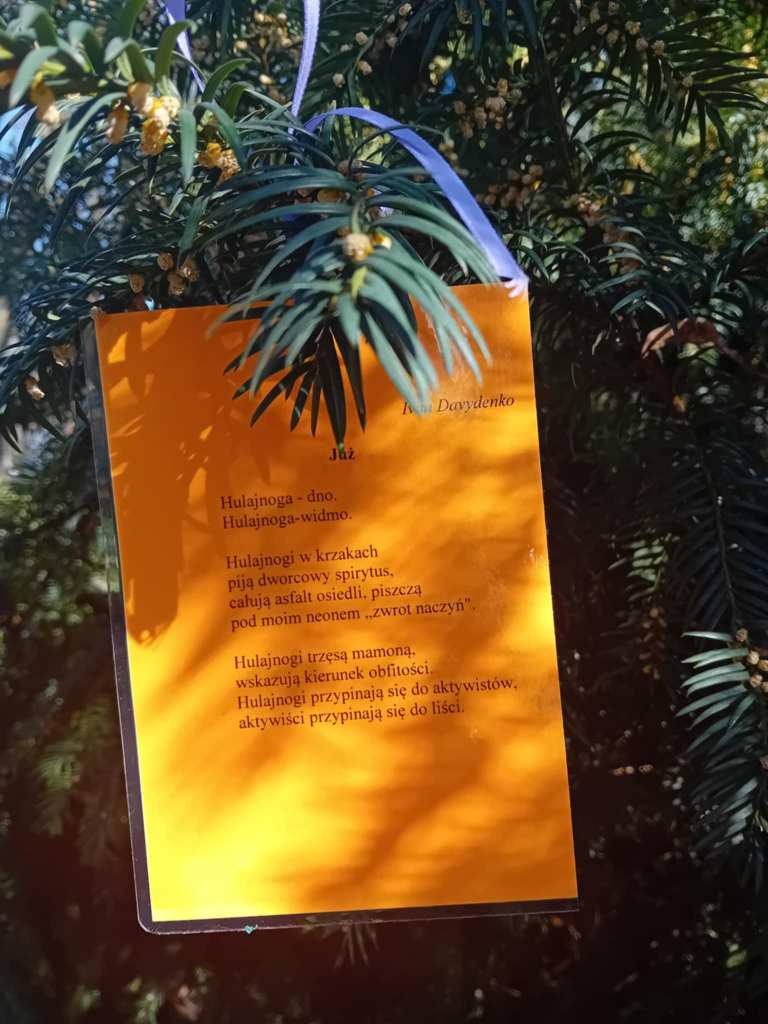 Poezja rozkwita na gałęziach i na wstążkach rozwieszonych między drzewami.