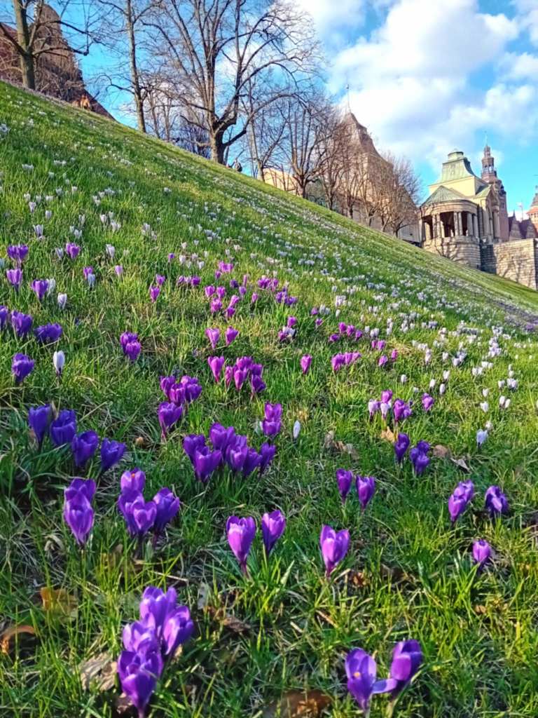 Najpierw poszłam na Wały Chrobrego, następnego dnia na Jasne Błonia, pokazowy park Szczecina, powstały na gruntach należących do rodziny Quistorpów. Te platany, pod którymi fiolecą się krokusy, pamiętają jeszcze tamte przedpolskie czasy.