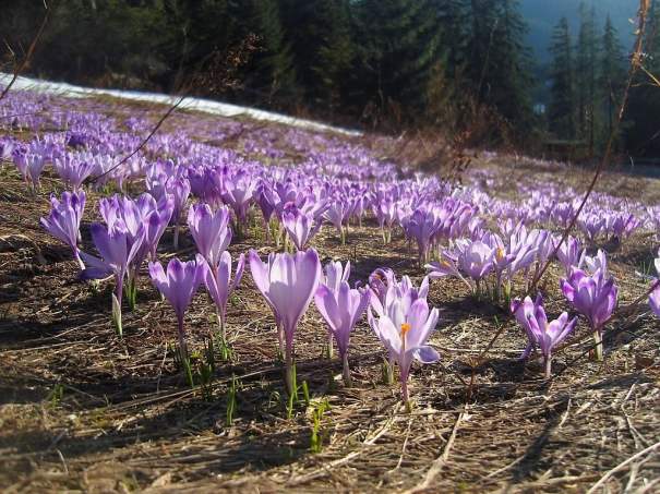 Już nie tylko Chochołowska rości sobie prawo wyłączności na te fioletowe zwiastuny wiosny (na zdjęciu poniżej te tatrzańskie krokusy).