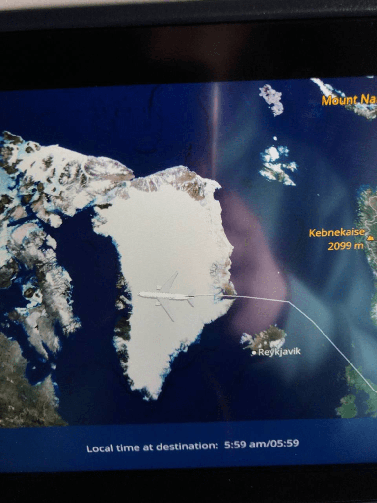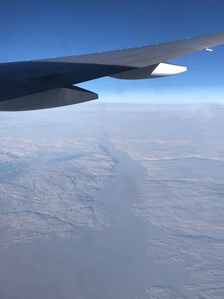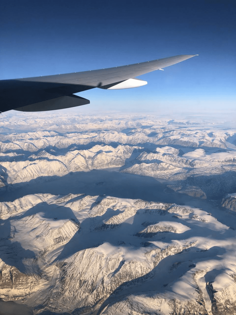 Poza pobytem tam, może równie niezwykły był sam lot – bezchmurny, w godzinach dziennych, najpierw wzdłuż Wielkiej Brytanii, później nad Grenlandią, a w końcu nad północnymi terytoriami Kanady. Krajobrazy rzadko widywane i nieoczekiwane.