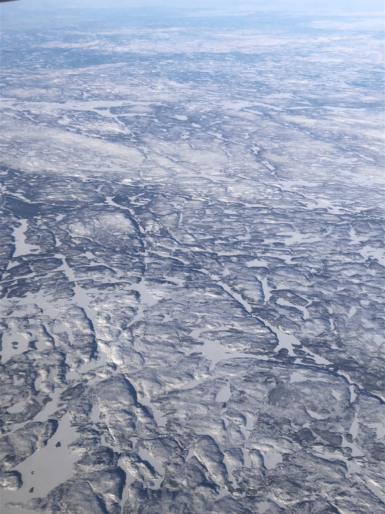 Północne Nunavut. Lecąc stopniowo bardziej na południe, śnieg zaczął powoli znikać i ustępować miejsca skałom. Inne pustkowie.