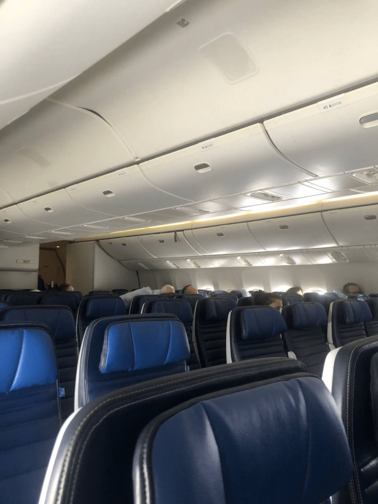 Samolot był wspaniale pusty. Oznaczało to ciszę i dostatek soków, herbat, i przekąsek, których linia zapewne miała znacznie więcej, niż pasażerów, i próbowała je jakoś rozdać. Do tego darmowe ładowanie urządzeń przy każdym siedzeniu, nowa poduszka i koc. Żyć nie umierać! A to była przecież linia lotnicza United, która w amerykańskiej popkulturze jest uważana za kiepską. Może loty nadatlantyckie rządzą się lepszymi zasadami.