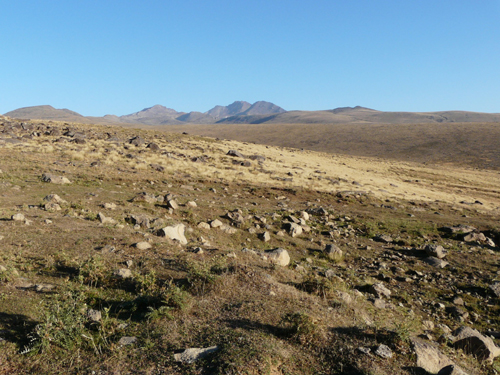 Aragat to wygasły wulkan, ostatnie erupcje miały miejsce kilka lub kilkanaście tysięcy lat temu. Krater otaczają cztery wyraźnie zarysowane wierzchołki, najwyższy z nich liczy sobie 4095 m, my zdobywamy oczywiście najniższy – 3900 m. Podejście jest początkowo bardzo łagodne, ale ukształtowanie terenu myli wzrok. Zaintrygowała nas błyszcząca w oddali skała, wydaje nam się, że za pół godziny będziemy koło niej, by lepiej się jej przyjrzeć, ale po godzinie nie widzę, byśmy cokolwiek się do niej przybliżyli.