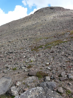 komitas2aZ upływem czasu łąka przeradza się coraz bardziej w rumowisko. Idziemy wolniej i bardziej się męczymy. A może to sprawka wysokości. Nigdy wcześniej nie byliśmy w wysokich górach, więc objawy choroby wysokościowej nie są nam znane, ale męczymy się coraz szybciej. Po każdym odpoczynku łapiemy zadyszkę już po paru krokach. Odpoczywamy więc coraz częściej, a widoki stanowią doskonałą wymówkę, podziwiamy i robimy zdjęcia.
