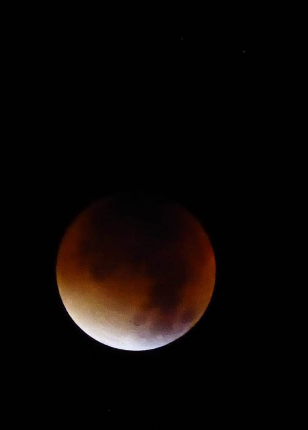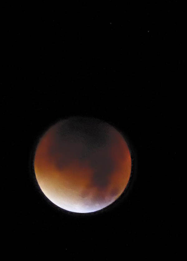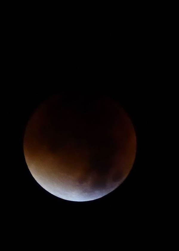 The term Blood Moon is sometimes used to describe a total lunar eclipse. When the Earth casts its shadow on a full moon and eclipses it, the moon may get a red glow. It is, what happened yesterday and everybody could see it. But not everybody made fotos. Agnieszka did.